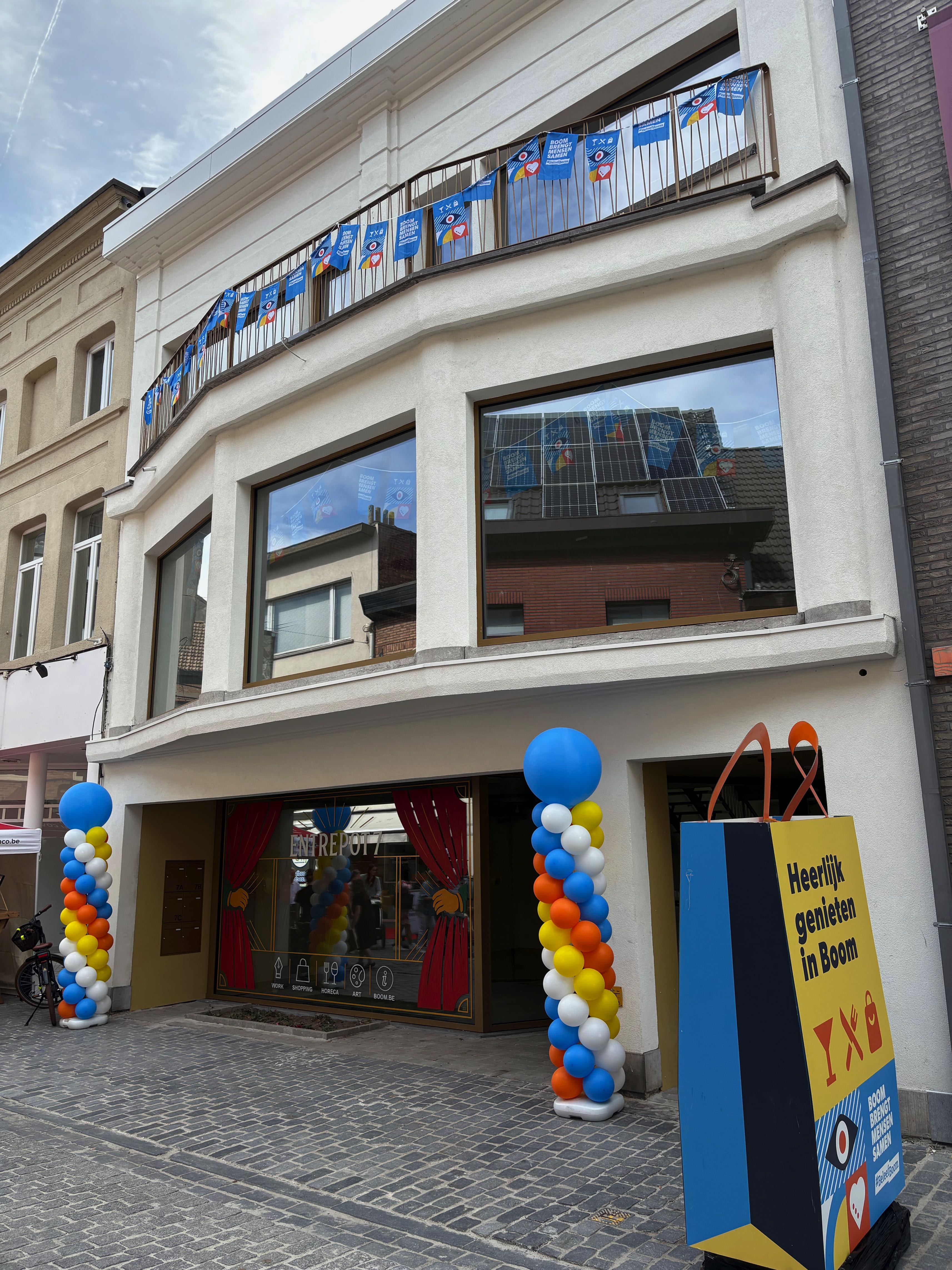 Een oud winkelpand met pakhuis in de dorpskern van Boom dient herbestemd te worden tot multifunctioneel centrum waarin onder andere kunstateliers, handelsruimtes en horeca onderdak kunnen krijgen. Ondanks de slechte staat van het bestaande gebouw en de wildgroei aan aanbouwsels zagen wij het potentieel om het pakhuis in ere te herstellen en het charmante industriële karakter opnieuw leven in te blazen. Met het wegnemen van een substantiëel volume centraal op het volledig dichtbebouwde perceel wordt licht en lucht aan het project gegeven. Een groene binnenkoer splits het project in 2 delen op en creëert een rust- en herkenningspunt. Dankzij een laagdrempelige, publieke doorgang doorheen de voorbouw en een connectie met de achter het project gelegen parochietuin wordt een nieuwe verbindingsas gelegd tussen de winkelstraat en de kaai langsheen de Rupel. Als ambitie wordt gestreefd naar het realiseren van een nieuwe ontmoetingsplek voor de Boomenaren!